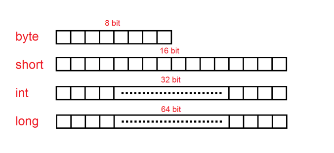 In our language of choice (C#), integers fall into these four basic categories – byte, short, int, long. All of these data types represent whole numbers, but they differ in the range of values available to the programmer. However, these ranges aren’t randomly defined. They actually correspond to 8 bit, 16 bit, 32 bit and 64 bit integers.